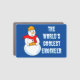 The world's coolest mechanical engineer text with a snowman holding a gear and sporting a hat and scarf with gears is a humorous engineering design for birthdays and the winter holidays.