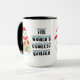 The world's coolest quilter text with a snowman holding a quilt is a humorous design for quilters at birthdays and holidays.