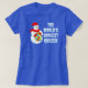 The world's coolest quilter text with a snowman holding a quilt is a humorous design for quilters at birthdays and holidays.