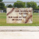 Coolest Rustic Personalized Baseball Banner with YOUR TEXT or Delete. Available in different Sizes, Indoor or Outdoor Vinyl, With or Without Grommets. Shown is the 5 Feet X 3 Feet Personalized Baseball Banner in Outdoor Vinyl, WITH Grommets. OR, choose a different size. CALL Designers Rodney and or Linda: 239-949-9090 to create this Banner in a different Size, with Text Templates to Fit Your Text.