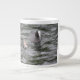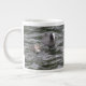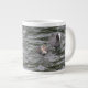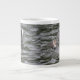 This awesome mug features a photograph of a Coot and her chick swimming on a tidal river. The female is grey with a white patch on her head and red eyes, while the tiny fluffy chick is pale grey with a white front.