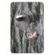 This awesome magnet features a photograph of a Coot and her chick swimming on a tidal river. The female is grey with a white patch on her head and red eyes, while the tiny fluffy chick is pale grey with a white front.