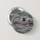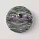 This button features a photograph of a Coot feeding a fish to its hungry chick. The adult bird has a white patch on the top of its head and a red eye, while the cute little chick is fluffy and gray.