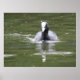 This print features a photograph of a Coot swimming on a tidal river. This beautiful British bird is black with a white beak and marking on its head. It is a common species but can sometimes be difficult to see because it is shier than some other waterfowl.