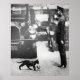 1925, in the middle of a traffic rush, a New York city cop brings traffic to a halt to let a mama cat carry her kitten to a new location.