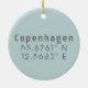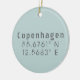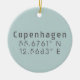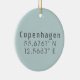 Ceramic ornament with Copenhagen Denmark latitude and longitude map coordinates in modern urban font