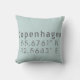 Throw pillow features Copenhagen Denmark latitude and longitude map coordinates in modern urban font