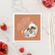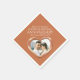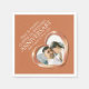 Customize these bronze wedding anniversary party in orange brown copper colored napkins with your 7th anniversary couples photo, year of marriage and names. Liquid copper heart effect art and design by Sarah Trett www.sarahtrett.com for www.mylittleeden.com