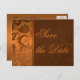 This orange and brown damask save the date post card matches the wedding invitation and other items shown below. ****If you change fonts, or the size of the font, some of the design and/or text may get cut-off. Everything will print as you see it on your monitor. I will not see changes you make, and Zazzle will NOT correct anything (typos, mis-alignment etc.). The text is all customizable. If you need help with this product, please email me BEFORE you place your order. If you require any other matching items, please email your request to niteowlstudio@gmail.com