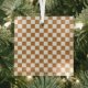 A brown and white checkerboard pattern fills the image. The square tiles are evenly spaced, creating a uniform and orderly geometric design.