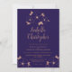 Sophisticated and modern, copper metallic floral design on midnight blue background wedding invitation.