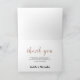 Sophisticated and modern, copper metallic floral design on midnight blue background wedding thank you card.