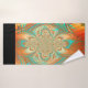 Towels with a warm color boho abstract pattern.