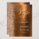 This elegant modern wedding save the date card features a copper brushed metal background decorated with faux diamond glitter. The customizable text combines white script and sans serif fonts. The reverse side repeats the copper brushed metal and glitter design.