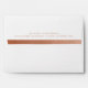 Romantic industrial copper metallic custom printed invitation and card mailing envelopes with return address on the back flap and faux rust texture liner design inside with a rustic elegant calligraphy script "Love" with long tail swashes, and a simple stripe on the outside. Entire template can be edited using the Zazzle designer to move anything or change colors and fonts to match your suite.