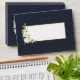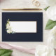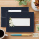 Create the perfect wedding invitation set with this pretty, elegant envelope design, featuring watercolor eucalyptus greenery and white floral arrangements, on the flap and on the front, with navy blue background inside and out! To finish it off, a faux copper border around the address box. Part of an invitation suite. Copyright Elegant Invites, all rights reserved.