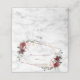Modern and trendy, this wedding place card design features a faux copper geometric embellished with watercolor eucalyptus greenery and burgundy and pink floral arrangements, over a faux white marble texture. Text is in a matching burgundy color. Copyright Elegant Invites. All rights reserved.