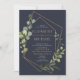 Copper Geometric Eucalyptus Blue Elegant Wedding Invitation