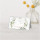 Modern and trendy, this wedding place card design features a faux copper geometric embellished with watercolor eucalyptus greenery, over a faux white marble texture. Text is in a matching copper color. Copyright Elegant Invites. All rights reserved.
