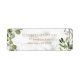 Modern, elegant and trendy, this wedding return address label design features a faux copper geometric embellished with watercolor eucalyptus greenery, over a faux white marble texture, with text in a matching copper color. Part of a matching set. Copyright Elegant Invites. All rights reserved.