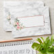 Create the perfect wedding invitation set with this pretty, elegant envelope design, featuring peach pink watercolor roses and flowers, on the flap and on the front, with carrera marble background, both inside and out! To finish it off, a faux copper rose gold border around the address box. Part of an invitation suite. Copyright Elegant Invites, all rights reserved.
