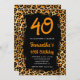 Copper Gold Leopard Painted Black 40th Birthday Invitation