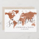 Copper World Map Save the Date Card with EDITABLE BACKGROUND and TEXT COLORS to match your destination wedding, travel theme wedding, or destination birthday party when you personalize the text.