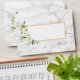 Create the perfect wedding invitation set with this pretty, elegant envelope design, featuring watercolor white rose and eucalyptus floral arrangements, on the flap and on the front, with carrera marble background, both inside and out! To finish it off, a faux copper border around the address box. Part of an invitation suite. Copyright Elegant Invites, all rights reserved.