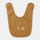 Warm and cheery copper colored bib with baby's initials monogramed in white simple script. Click on the Personalize button to customize monogram.