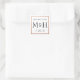 Pretty copper foil effect border with modern monogram inside including space for wedding location and date. Click CUSTOMIZE FURTHER to adjust text placement, font, color, or sticker background color to coordinate with your wedding. Visit the Paper Grape Zazzle Designer shop for other copper wedding and party decor accents.