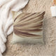 Modern throw pillow features an artistic abstract macro palm leaf in a creamy ivory and copper color palette. A stylish minimal abstract leaf composition with copper and bronze highlights and shadows that give depth and perspective to the overall design, contrasting against the simple ivory background.