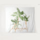 This elegant modern wedding reception or bridal shower tapestry featuring tropical greenery in the form of faux copper foil palm trees, and elegant vintage copper script, is perfect as a photo booth backdrop. Easily personalized with your names and wedding date. Photograph of the palm trees and design © by TK Goforth.