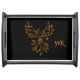 Copper Phoenix Rises on Black Monogrammed Serving Tray