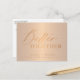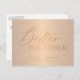 Modern minimalist elegant wedding save the date postcard with a chic trendy "better together" transparent overlay calligraphy script against a metallic like faux copper gold background. +++++++++++ Easy to personalize with your details on both sides!