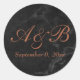 Copper Script Initials & Date w/ Faux Black Marble Classic Round Sticker
