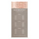 Classy and glamorous rackcard featuring realistic digital image of rich brown taupe linen background accented by realistic digital image of rose gold sequin pattern.