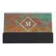 Copper Turquoise Metallic Texture Monogram Initial Desk Business Card Holder