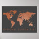 Copper and dark gray world map with optional custom text and movable heart location marker is beautiful as artwork for a wanderlust, globetrotter, world travel fanatic.