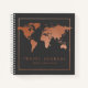 Unique copper world map on editable dark gray background with a simple geometric border for the travel-loving, wanderlust adventurer who has lots of trips to plan and journies to write or draw about. Our map design is elegant, professional and a bit masculine making it perfect for a destination wedding groom or groomsmen gifts for those trekking around the world with you! All text and EVEN the page rules inside can be personalized so it's just right for however you plan to use it. More color options are available in the Custom Paper Works Zazzle Designer Shop.