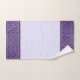 Coptic textile pattern in purple . PRINTED ethnic art on a bath towel set . Design by Alma Wad . You can personalize these towels with monograms / name /logo etc .