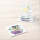 Copy of Hand drawing funny Cute cat with flowers Square Paper Coaster