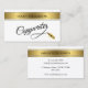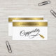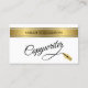 This copywriter business card design features a gold effect band/ribbon on a white card with beautiful 'copywriter' handwriting and the nib of a fancy ink pen. This business card is suitable for a freelance copywriter or copywriting business. The gold effect and black writing create a simple stylish and elegant design and project an image of an experienced professional.