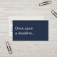 A modern, minimalist business card perfect for copywriters and freelance writers. The front features a dark navy blue background with the humorous phrase "Once upon a deadline..." in off-white text. The reverse has an off-white background with dark navy blue text and space for your contact details. All text on the card is fully editable.