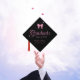Custom coquette aesthetic graduation cap topper with a pink bow and a black background. Personalize it with the graduate's name, class, and college or high school name in a beautiful script font.