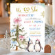 Coquette Blue and Pink Penguin Gender Reveal Invitation