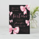 Coquette Blush Pink Bow Sweet 16 Party Black Invitation