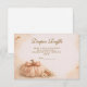 A warm and cozy fall baby shower design featuring a hand-painted watercolor pumpkin surrounded by soft peach florals, golden leaves, and delicate autumn accents. The earthy orange palette and elegant arch layout create a refined harvest aesthetic that feels timeless and inviting. Perfect for an autumn celebration, a neutral fall theme, or a charming “Little Pumpkin” baby shower with rustic floral details.