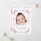 A sweet card to announce the birth of your baby girl featuring her photo in a watercolor frame composed of pink delicate ribbons and coquette bows, blending a minimal aesthetic with a touch of whimsical vintage charm. Her name is showcased in an elegant pink script and her birthday and birth stats are in classic serif typography. On the back, add three additional photos and customize your message to family and friends.