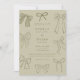 Plain white envelopes are included with paper invitations and will come to fit the invitation size you select. If you don’t need the envelopes, you may choose to not receive them by selecting the dropdown below "Envelopes" and choosing "None." If you’d like to have a design on your envelopes, you can browse all of these available envelopes to find the design that complements your Coquette Bows Green Wedding Invitation.
