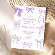 Plain white envelopes are included with paper invitations and will come to fit the invitation size you select. If you don’t need the envelopes, you may choose to not receive them by selecting the dropdown below "Envelopes" and choosing "None." If you’d like to have a design on your envelopes, you can browse all of these available envelopes to find the design that complements your Coquette Bows Purple Graduation Party Invitation.
